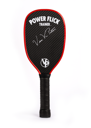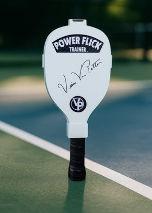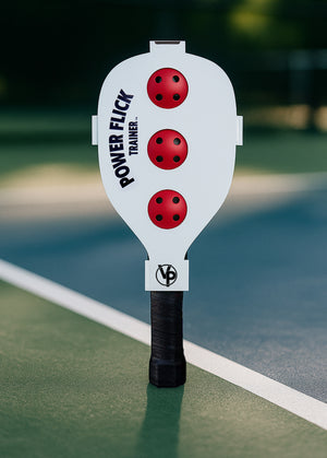 THE POWER FLICK TRAINER is the ultimate tool for serious pickleball players. With built-in resistance to boost precision and control, it trains your wrist, sharpens your reflexes, and levels up your game—fast. Whether you're drilling solo or warming up before a match, this paddle delivers results you’ll feel on the court.